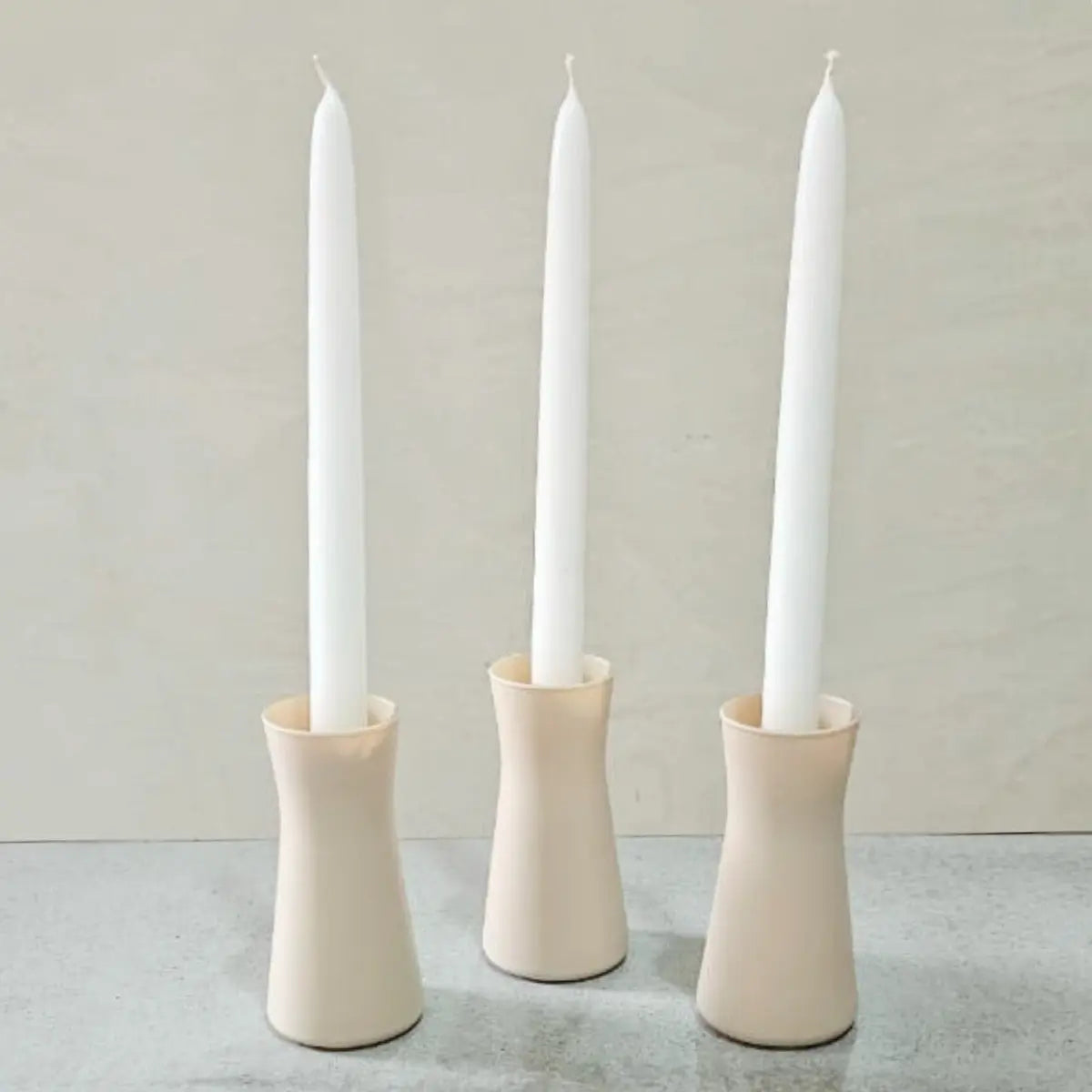 - Medidas: Candelabro > 12 cm de alto x 5,5 cm de base. La vela > 25 cm.