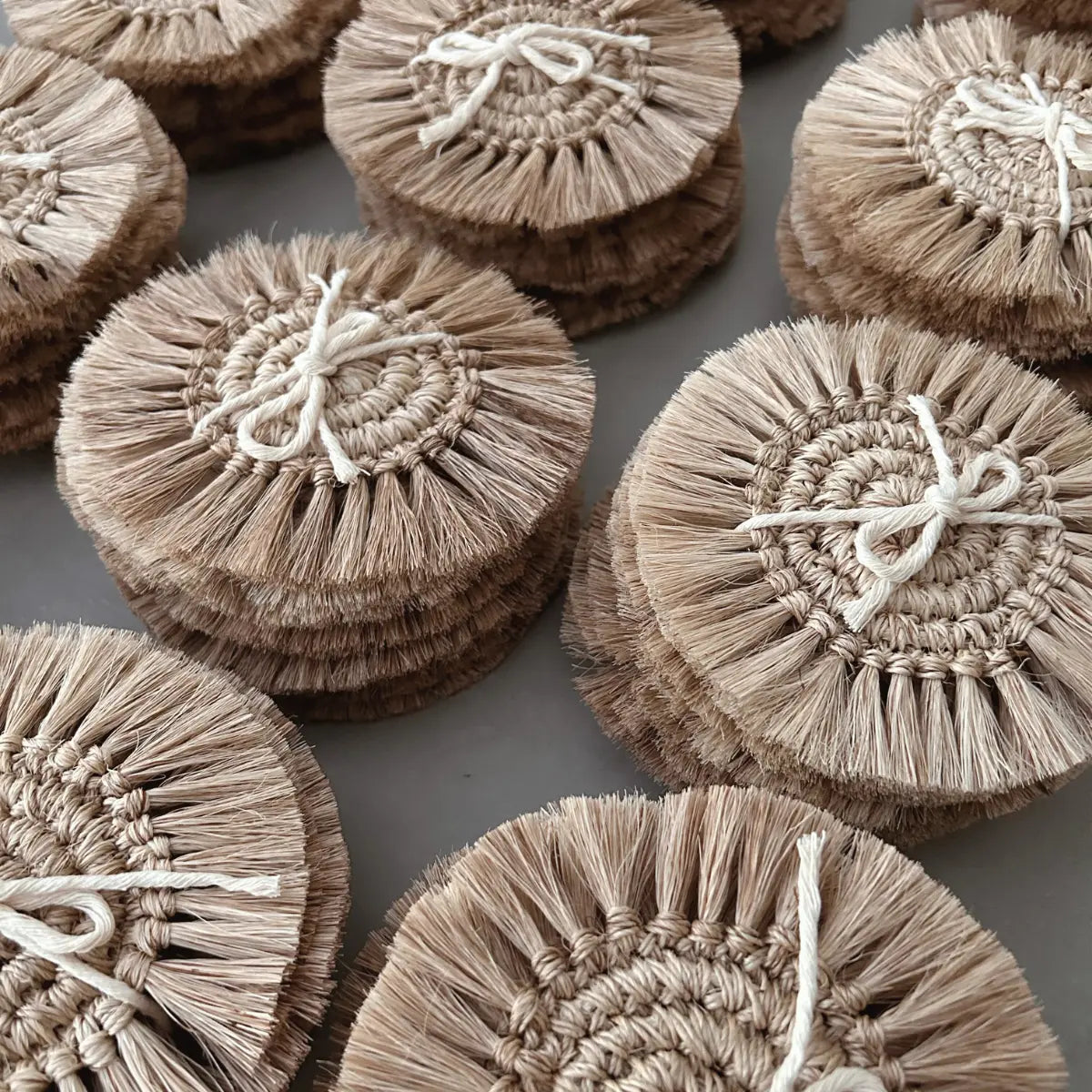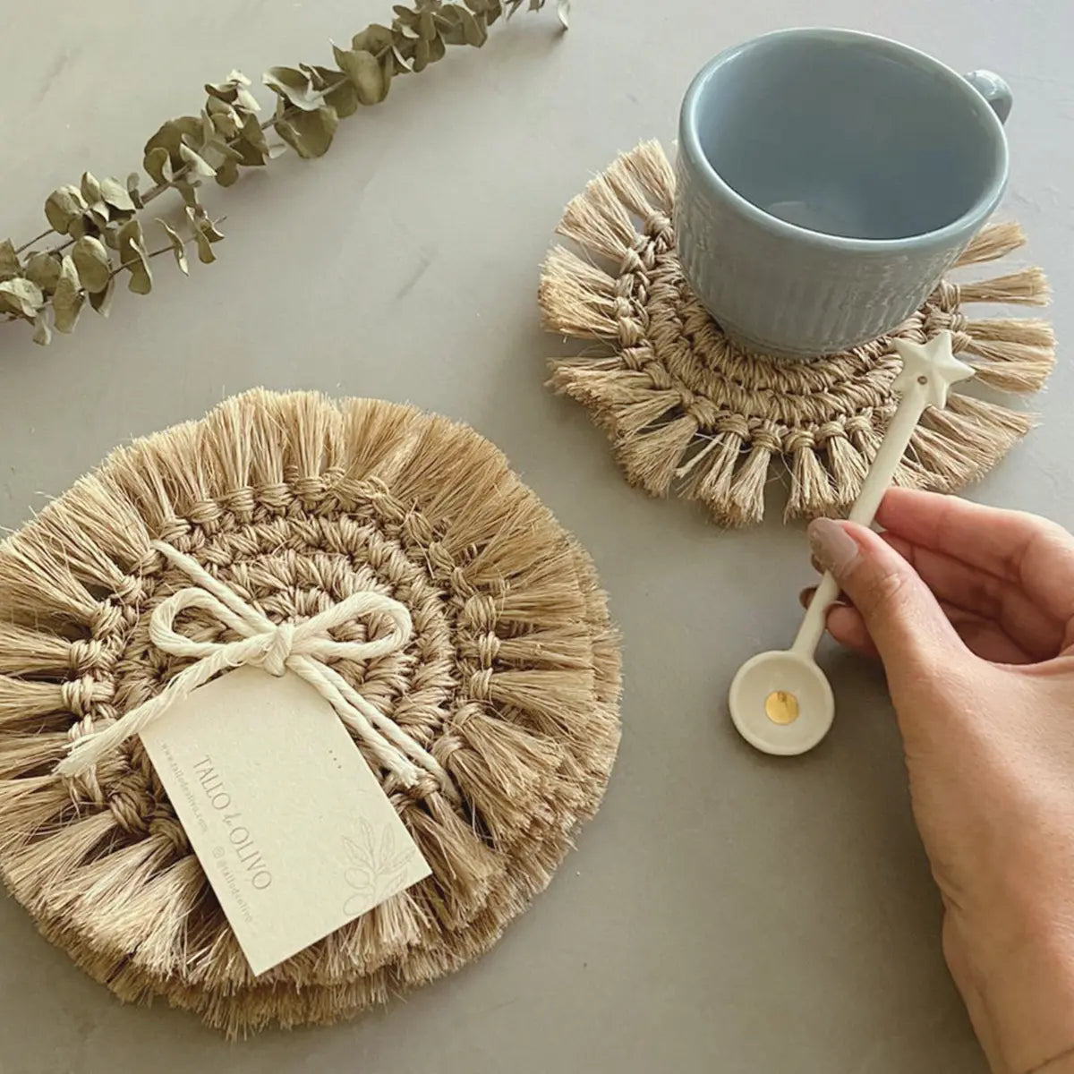 Portavaso redondo tejido por artesanos del nororiente colombiano. perfecto para acompañar y decorar tu mesa de manera natural y armoniosa.