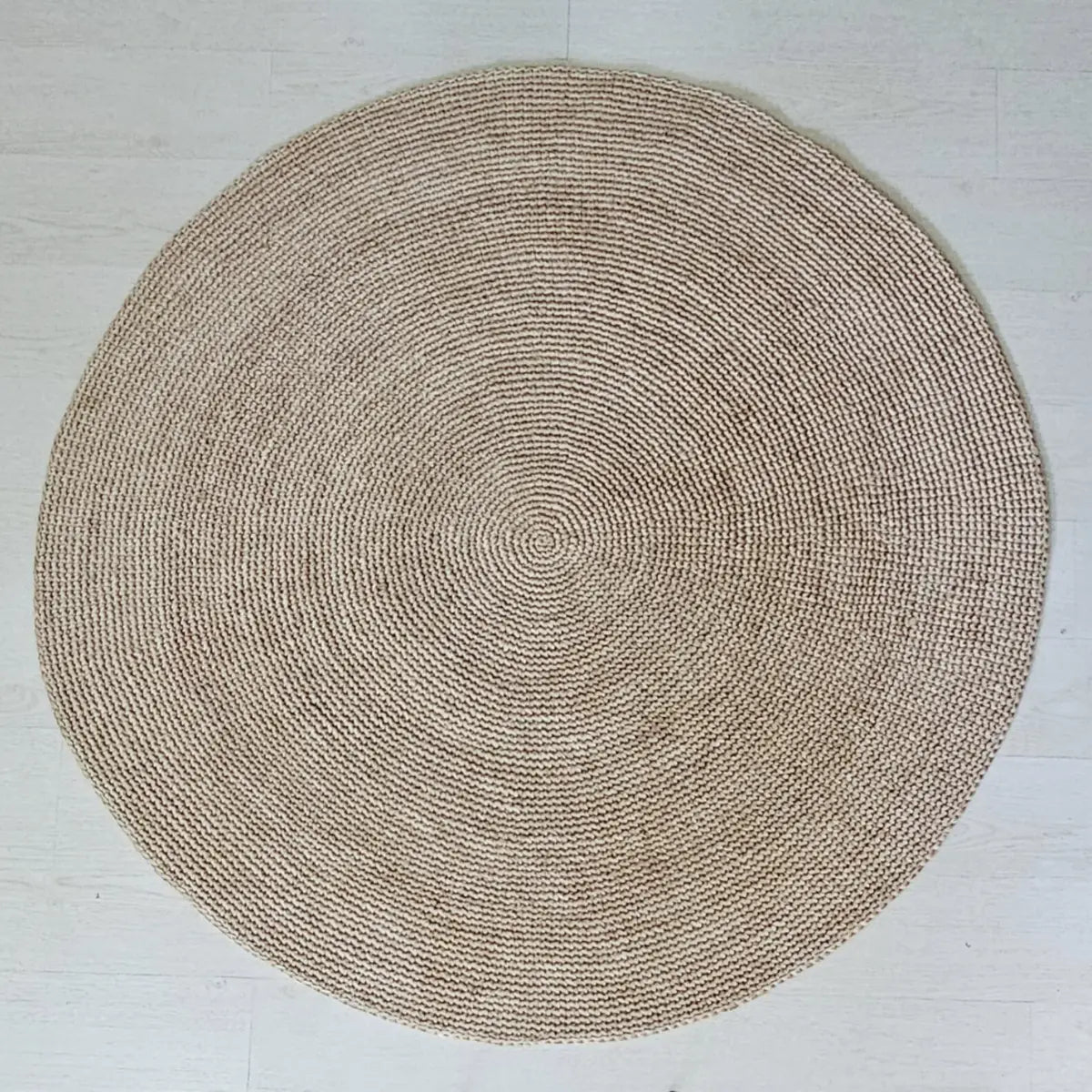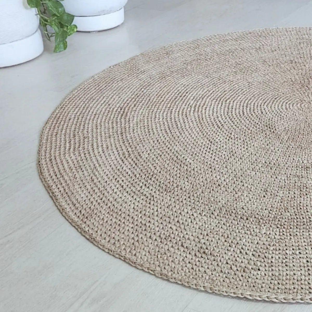 Tapete redondo tejido en Fique por artesanos locales. Llena tus espacios con piezas que dan calidez y armonía.